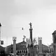 Der Königsplatz (beschriftet mit "Königlicher Platz") in München 1940. Die beiden tempelähnlichen Pavillons im Vordergrund sind nicht mehr vorhanden, statt dessen verläuft heute eine Straße durch die Bildmitte. Natürlich erreichte die Hitlerjugendgruppe sehr früh die Stadt und die Schatten der Gebäude waren an diesem sonst regnerischen Tag noch lang, wenn einmal kurz die Sonne durch die Wolken brach. Und auch hier wieder eine unglaublich gigantische Hakenkreuzfahne...